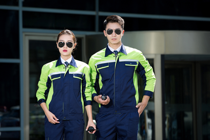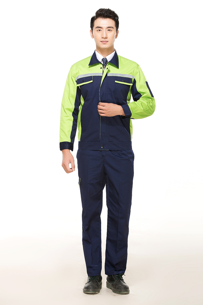 淮南反光條工作服定做款式藏青色拼綠色工作服長袖套裝GZ-8016
