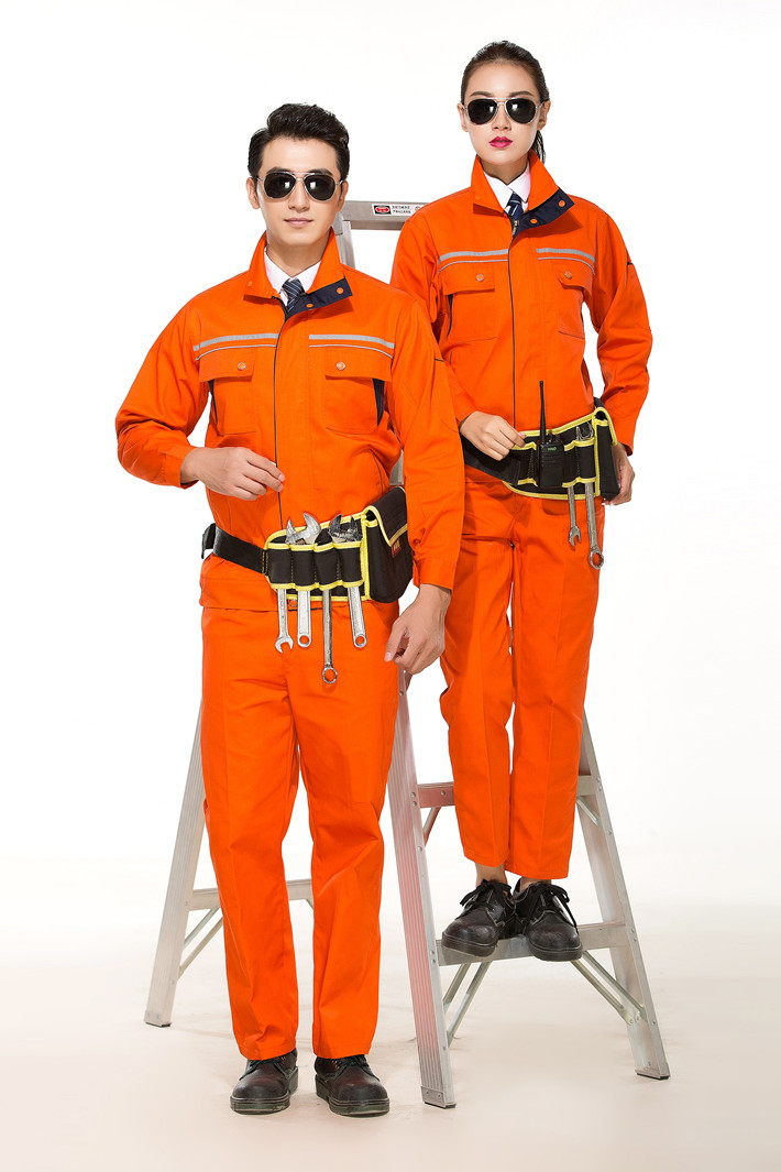 淮南工作服定做廠家定制煤礦機械工廠桔黃色立領拼色GZ-8024