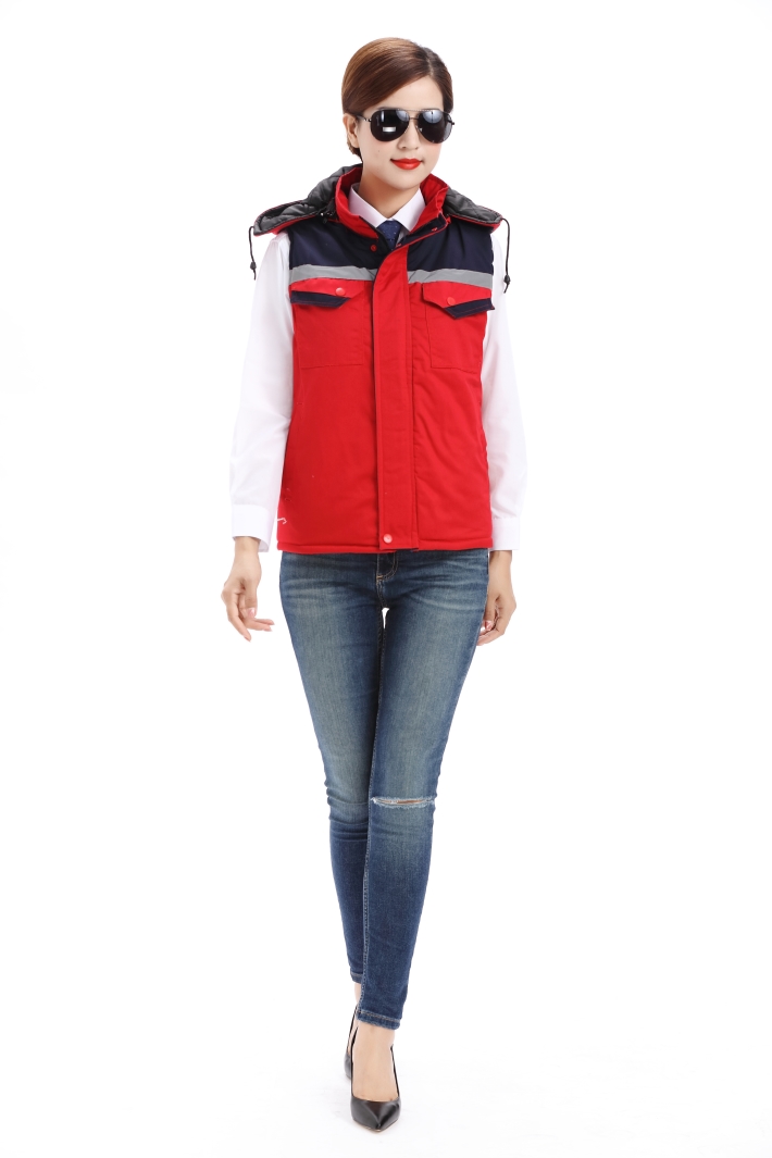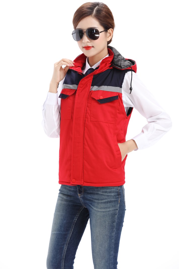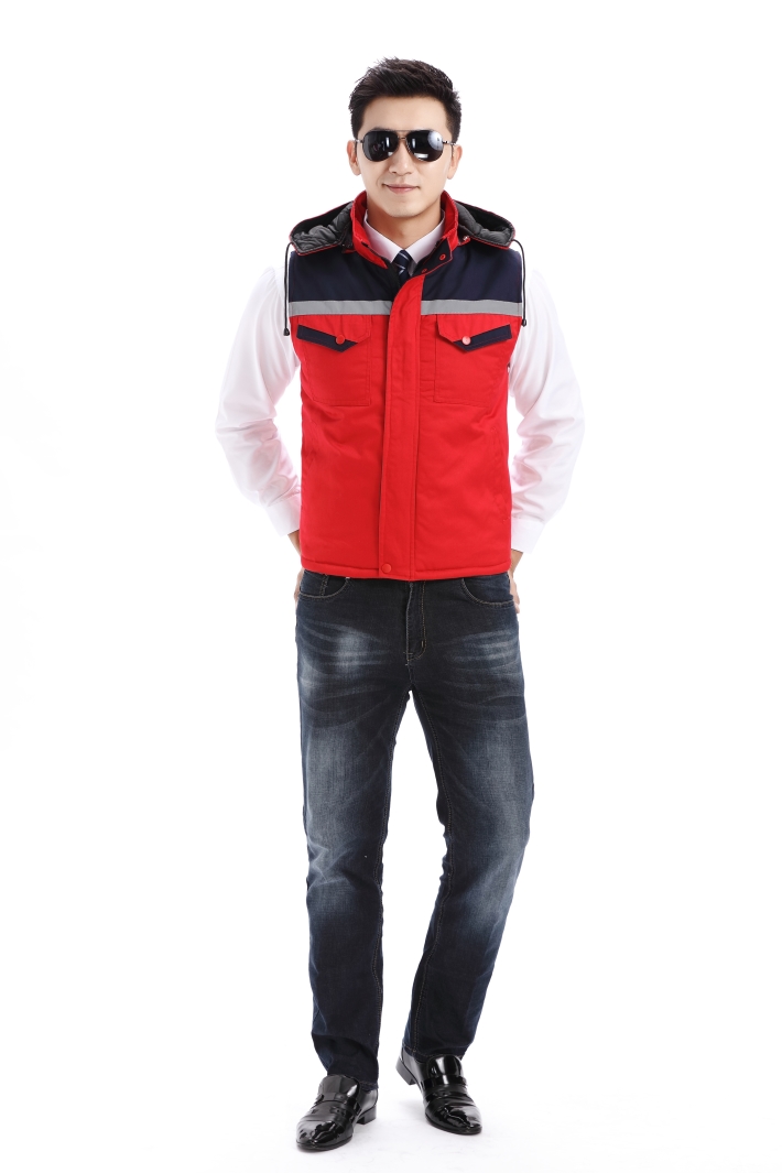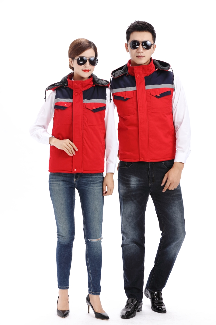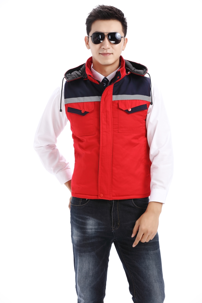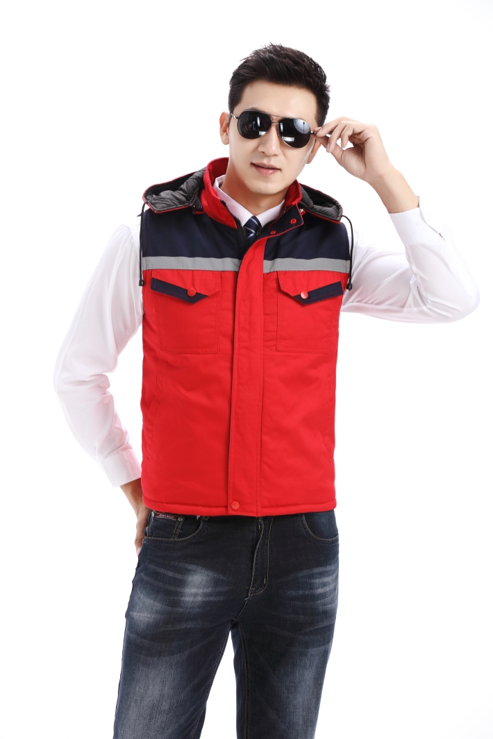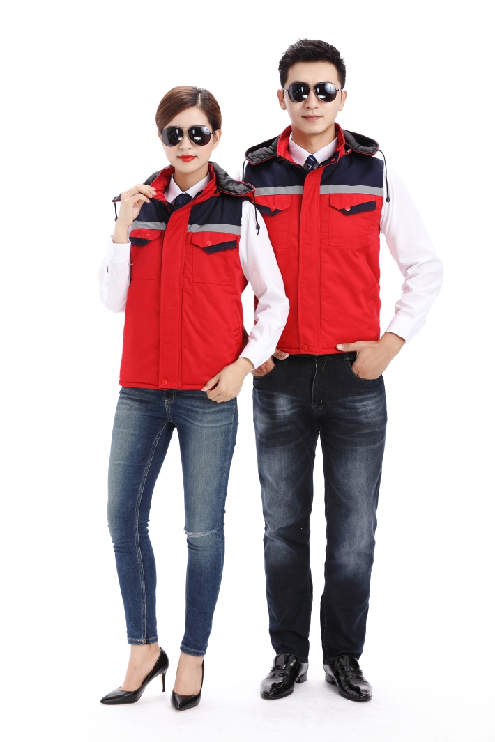 紅色工作服棉馬甲,反光條冬季棉馬甲