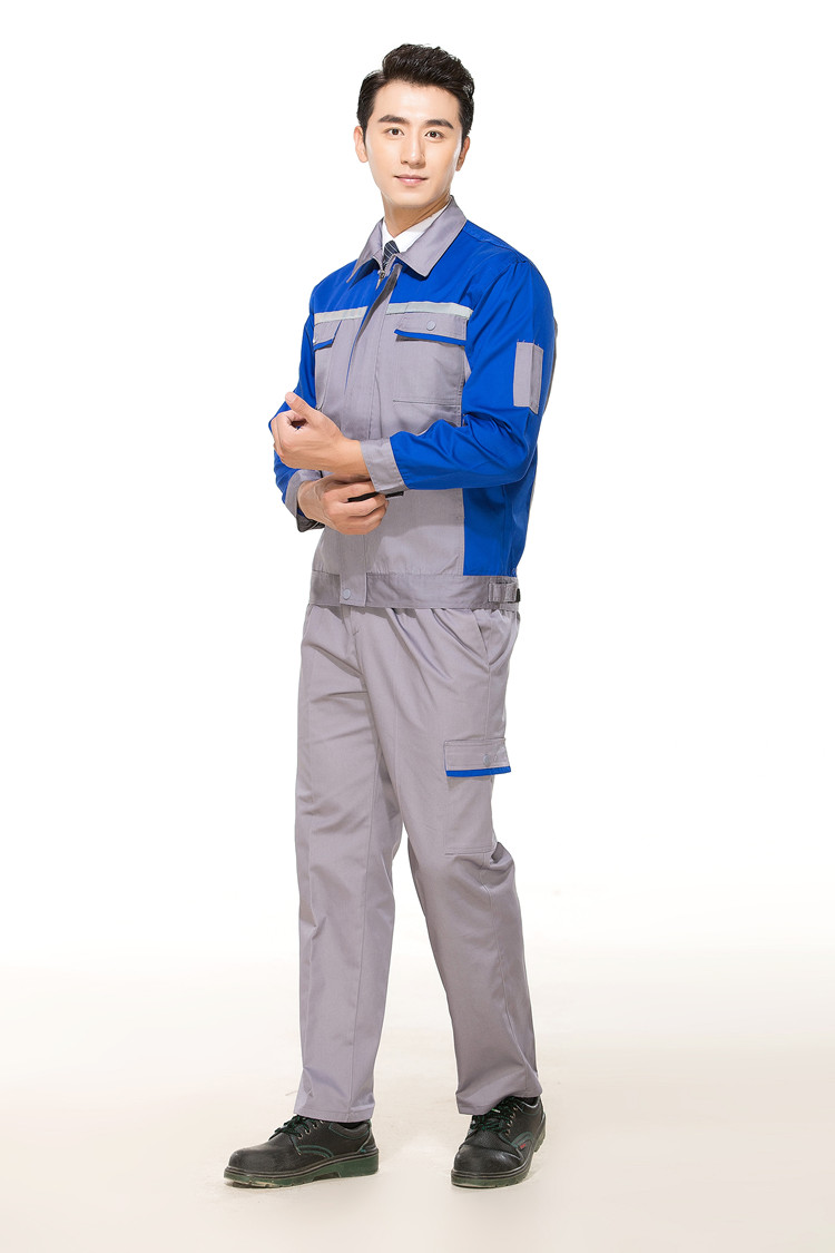 滌棉灰色拼藍色反光條工作服套裝FG-8001