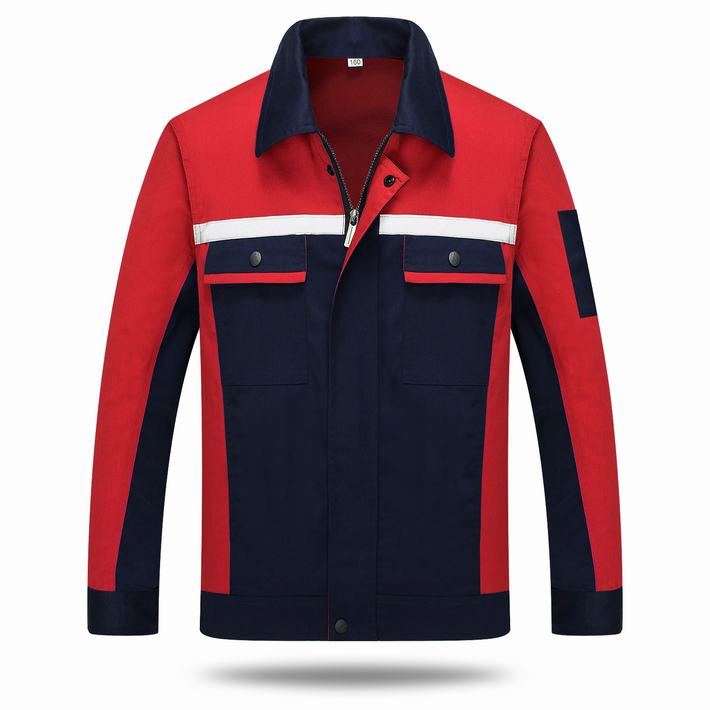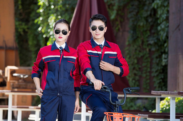 滌棉藏青色色拼紅色工作服套裝GZ-8012