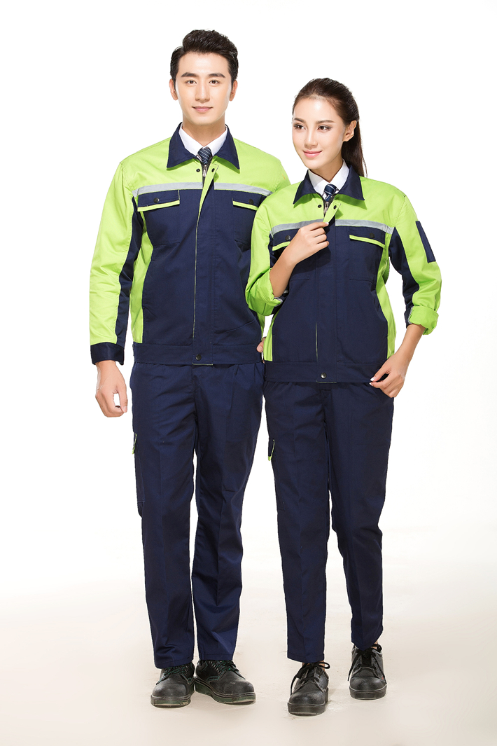 滌棉藏青色拼綠色反光條工作服長(zhǎng)袖套裝GZ-8016
