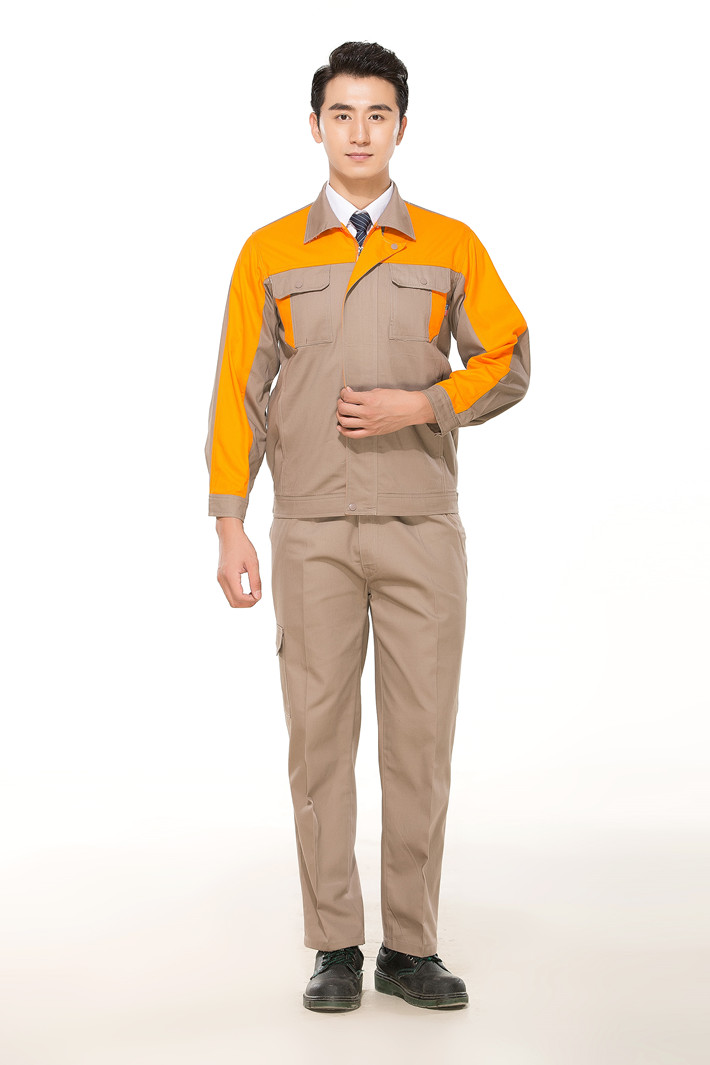 全棉紗卡灰色拼桔黃色拉鏈式工作服長袖套裝GZ-8017