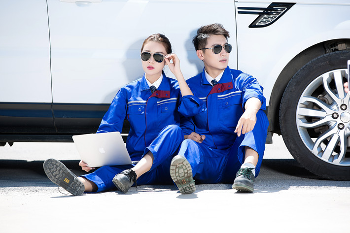 滌棉寶藍(lán)色立領(lǐng)拼色拉鏈?zhǔn)椒垂鈼l工作服長(zhǎng)袖套裝GZ-8025