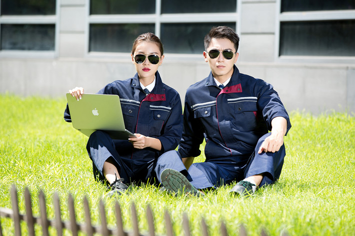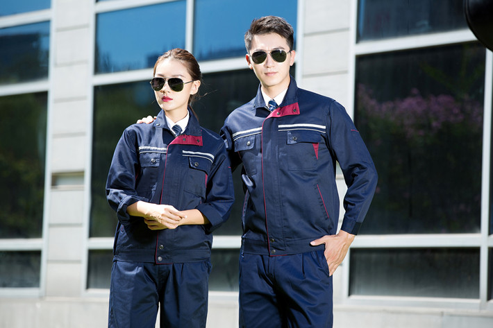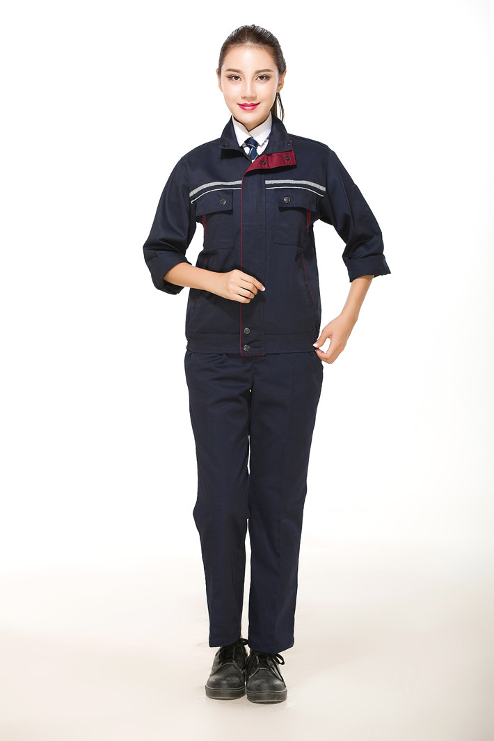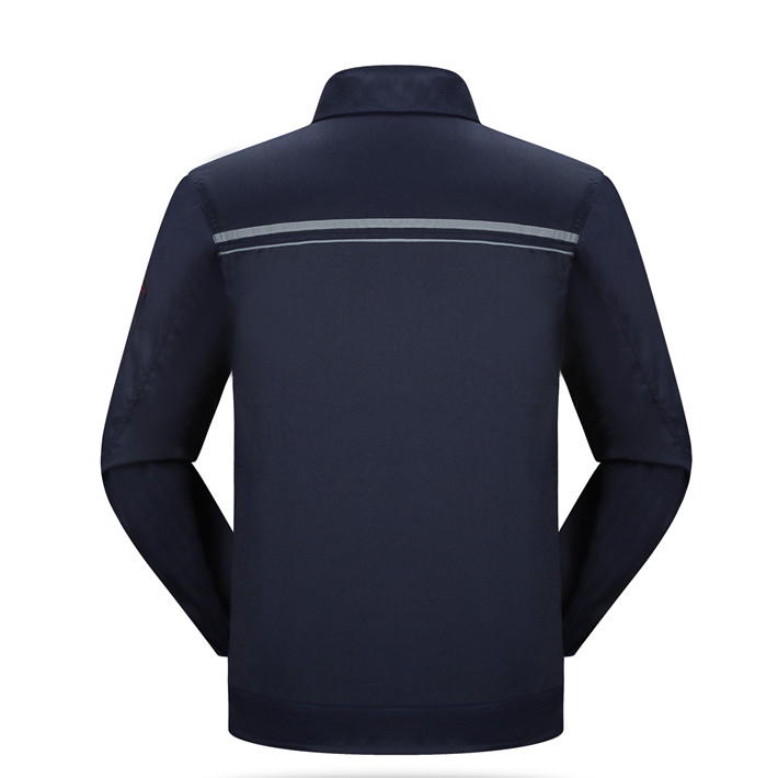 滌棉藏青色立領(lǐng)拼色拉鏈?zhǔn)椒垂鈼l工作服長(zhǎng)袖套裝GZ-8026