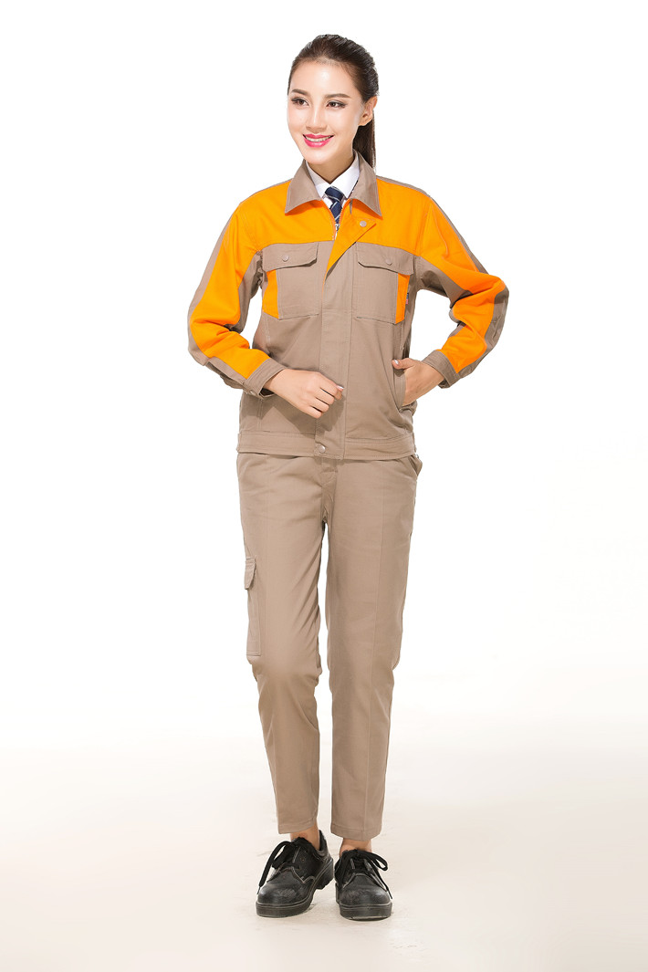 全棉紗卡灰色拼桔黃色拉鏈式工作服長袖套裝GZ-QM8017