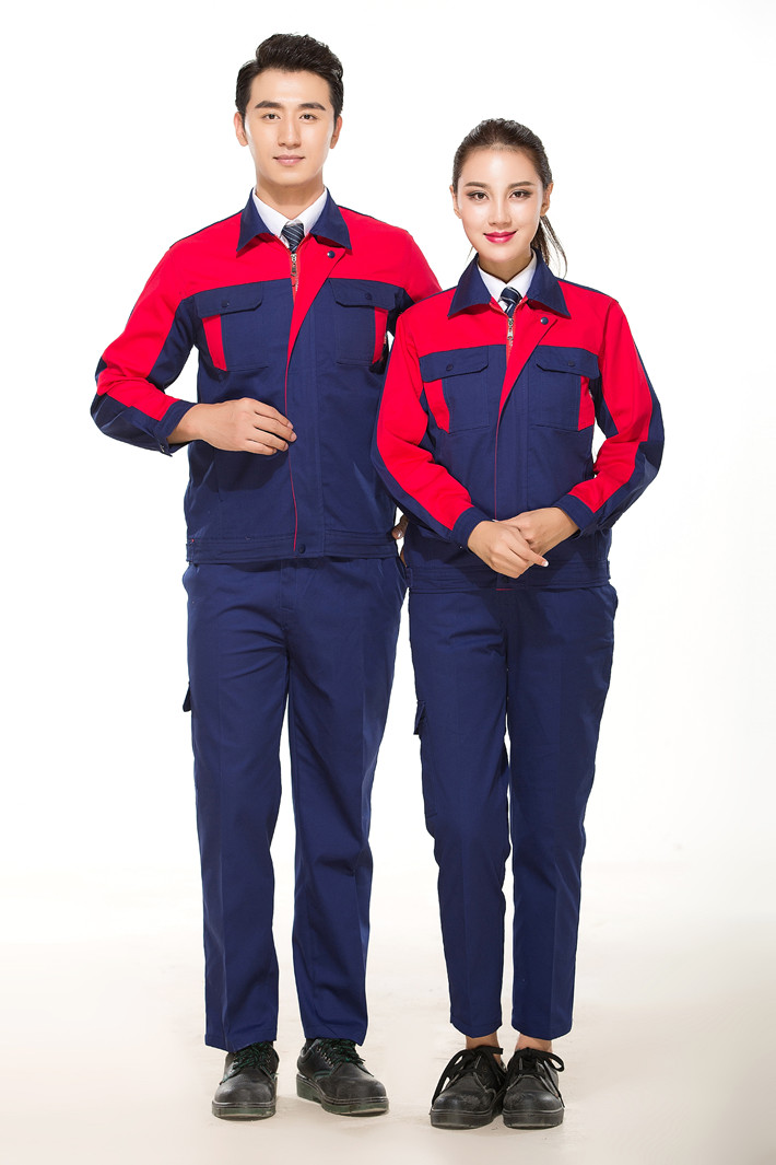全棉紗卡藏青色拼紅色拉鏈式工作服長袖套裝GZ-QM8019