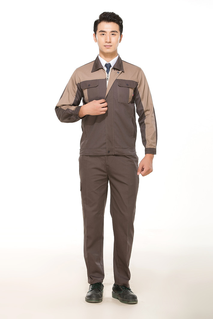 全棉紗卡卡其色拼灰色拉鏈式工作服長袖套裝GZ-QM8023