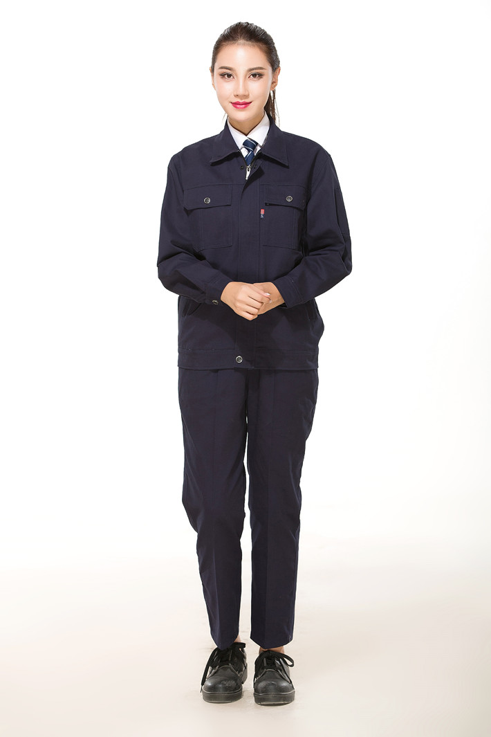 全棉紗卡藏青色拉鏈?zhǔn)焦ぷ鞣L(zhǎng)袖套裝GZ-QM8021