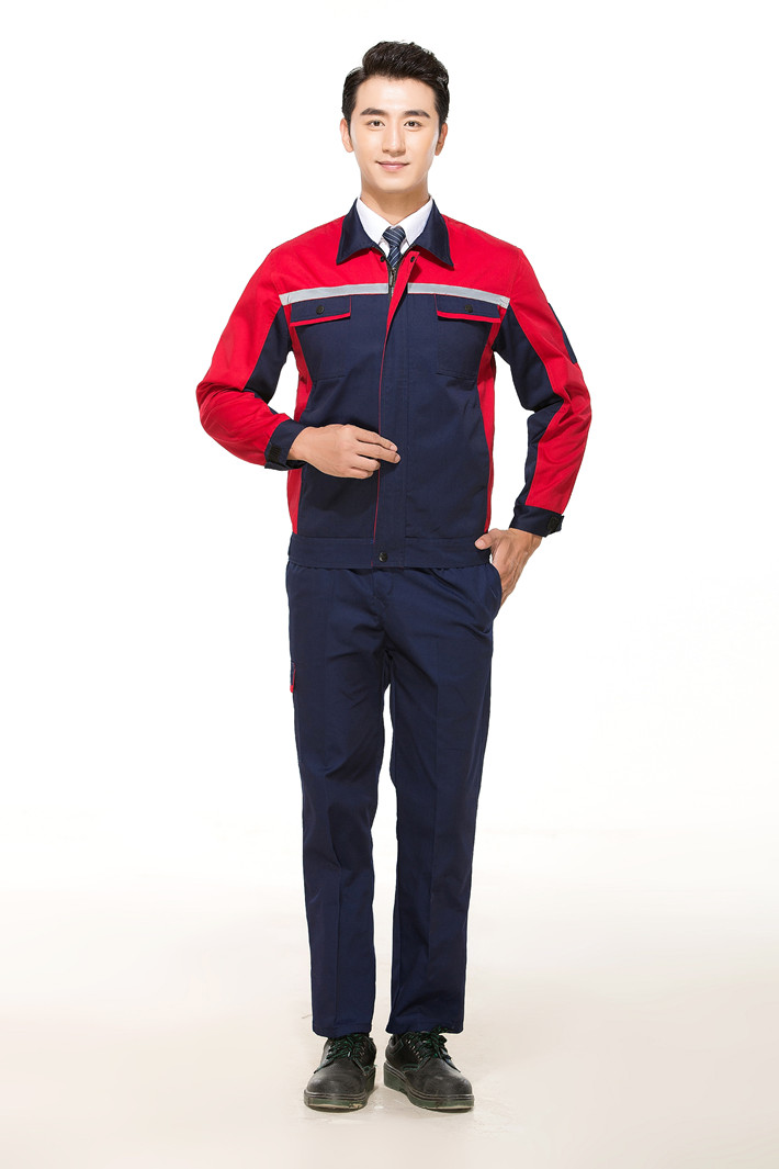 滌棉藏青色色拼紅色工作服套裝GZ-DM8012