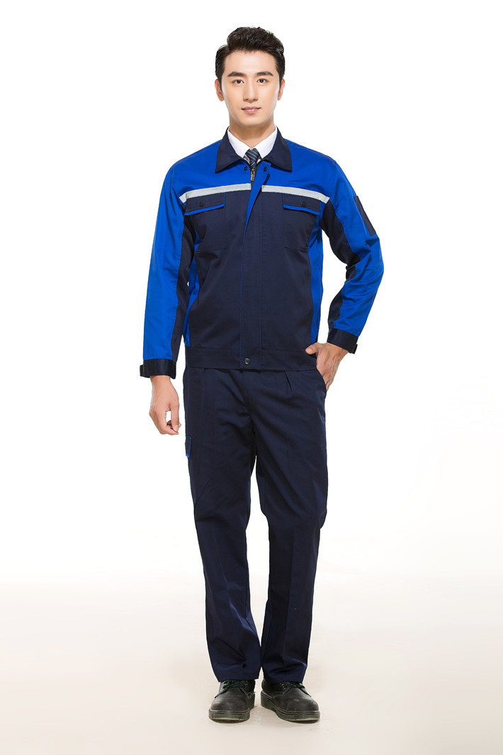 滌棉藏青色拼藍(lán)色反光條工作服套裝GZ-FGT8011