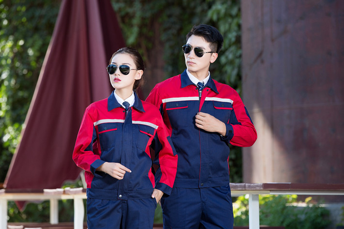 滌棉藏青色色拼紅色反光條工作服套裝GZ-FGT8012