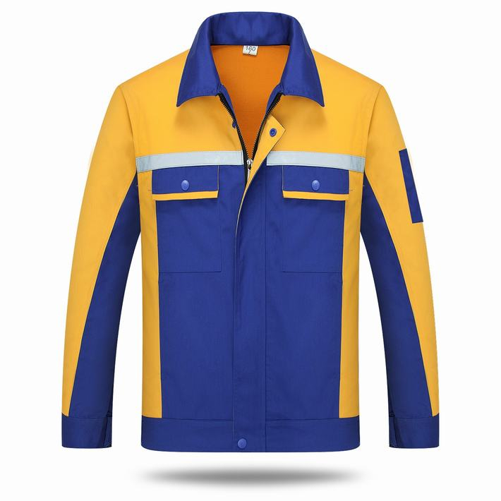 滌棉藍色拼黃色反光條工作服長袖套裝GZ-FGT8014