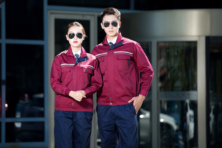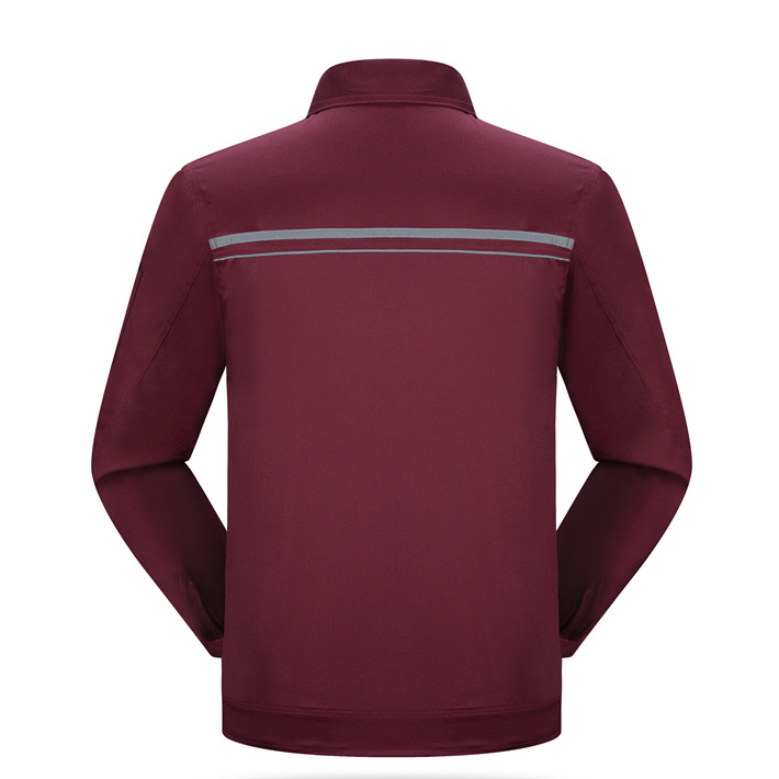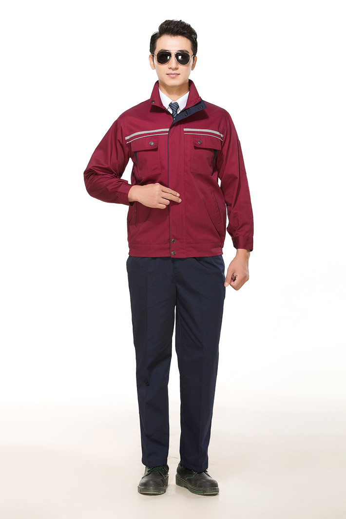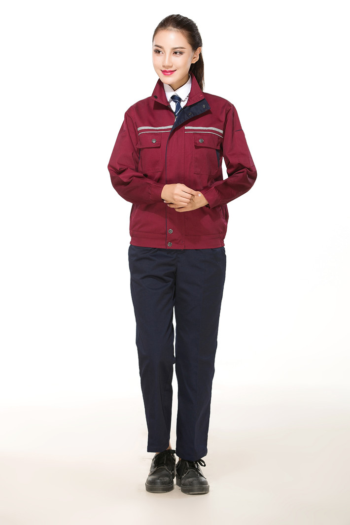 滌棉棗紅色立領拼色拉鏈式反光條工作服長袖套裝GZ-FGT8028