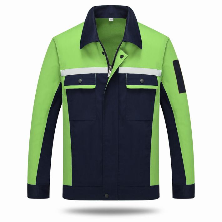 合肥反光條工作服定做款式藏青色拼綠色工作服長袖套裝GZ-8016