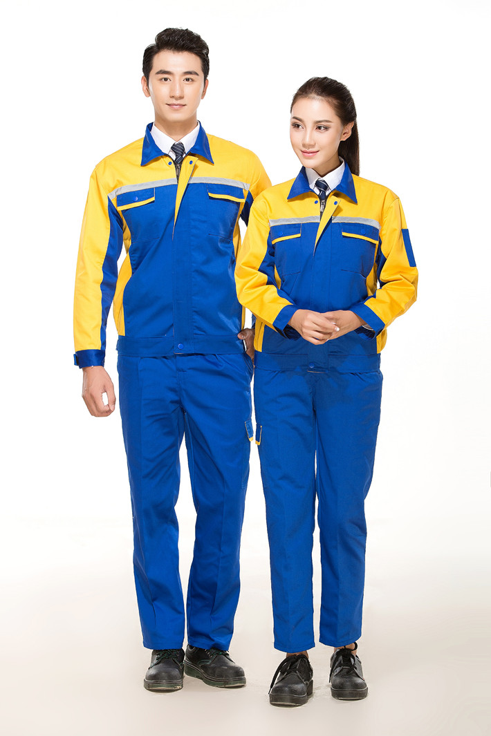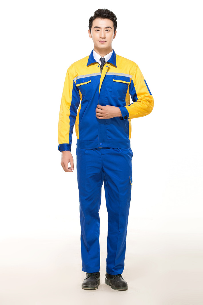 淮南防靜電工作服定制款式藍(lán)色拼黃色GZ-8014
