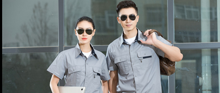 工作服按選材及氣候的分類制服按其所選用的材料不同可分為:純紡織物,混紡織物、裘皮及其它材料制服。純紡織物有天然纖維的棉、麻、毛、絲;化學纖維的粘膠、絳綸、錦綸、腈綸、氨綸、丙綸、氯綸、特氟綸等等。混紡織物是指以上各種材料中兩種及其以上混和而紡織成的織物。裘皮制服分天然裘皮及人造裘皮兩類,天然裘皮包括動物毛皮及皮革兩類;人造裘皮包括長毛絨駝絨、植絨、人造革、合成革及其它化學革等;其它材料主要指各種木質、甲殼質、塑料、金屬等等。